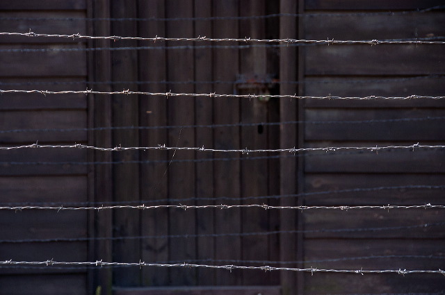 Confined. This image was taken in Auschwitz in September 2005. For me it records the dark, oppressive, locked-in feel of the place with the simplest design I could manage, and it's the only image so far out of the 150 or so that I took that day that I've processed or posted here. The sun was shining and the sky was blue and there was a complete unreality about the site, bearing in mind the contemporary black & white images that we've all seen so many times. Posted here on 27 January 2015, the 70th anniversary of the liberation of Auschwitz.