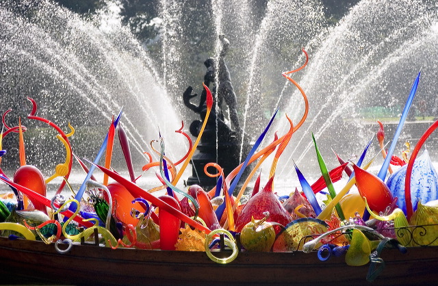 Hot Water. Part of the huge exhibition of glass sculpture by the wonderful Dale Chihuly at Kew Gardens, taken in October 2005. This boat full of glass shapes was one of the more obvious exhibits, and it got my attention as soon as we arrived, but there were many more subtle pieces almost hidden in every part of the gardens.