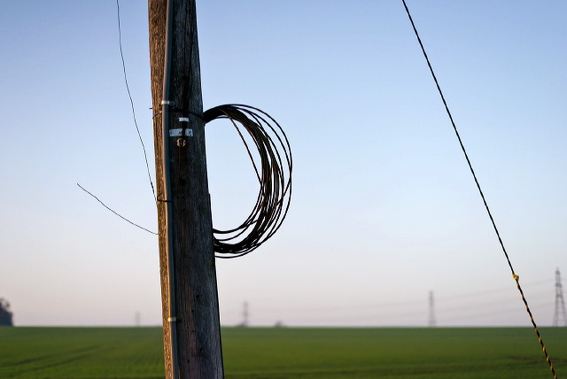 Landscape. The East Hertfordshire landscape is beset by pylons and overhead cables. I was attracted by the contrast here of the sharp coil of cable on the telegraph pole against the hint of a soft landscape (complete with pylons) under a clear blue sky in the background. I guess I was trying to make a small comment about technology upsetting our view of the countryside, but in competition the judge didn't see the point of the image at all. It's not often that I walk around with a 'standard lens' on the camera, but I really like the diminutive (by modern standards), sharp and almost distortion-free AF Nikkor 50mm f/1.8D.