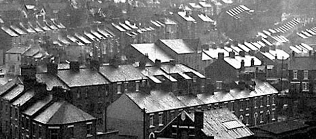 Durham. January 1975. I was returning by train from a work meeting in Newcastle, in the North-East of England. In those days I was crazy enough to carry my modest but heavy camera outfit with me on such occasions, and I had a cumbersome Vivitar 300mm f/5.6 fitted to my Nikkormat FTn. We slowed for Durham station, and I took a few pictures of the fine cathedral which rises above the rooftops on a small hill in the centre of the city. As the train pulled out of the station I grabbed this view of the weak winter evening sunlight on the slate roofs. I was going through my grainy fast film phase, so this was shot on Ilford HP4 rated at 1250 ASA, developed in Acutol.