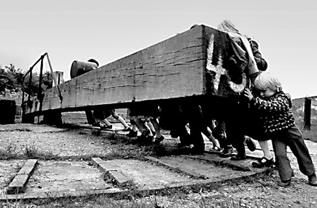 Legs and Co. June 1979. Taken on a rather cold Camera Club social outing on a canal long-boat. The kids are pushing on the arm of the lock gate. For the benefit of overseas visitors, Legs and Co was the name of a 5 or 6-girl dance group appearing at the time on the weekly Top of the Pops TV programme. The chubby little lad on the right is my son, now over six feet tall.